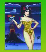 A couple of years ago, Aurora's loyal partner and man's best friend, Party Werewolf, commissioned an oil portrait from one of our favorite horror/tiki artists, Devon Devereaux. While we can't ship you all a giant oil painting of Aurora, we have the next best thing—a gore-geous giclée print!